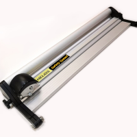 Cut Substrates the easy way with the Helios substrate cutter. This unit features a strong anodized aluminum base that incorporates dual cutting tracks, one for the utility blade and another for the standard cutting wheel. It is fitted with an integral leveling adjustment allowing the cutting bar to sit flat on any thickness of material up to ¾” (20mm) thick. The cutting head includes a magnetic blade magazine which accepts utility blades and acrylic scoring blades. A 45mm textile cutting wheel and holder is also included as standard equipment.