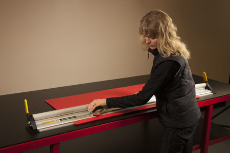 Cut PVC, foam board, banner material, and many other common material found in sign shops with the Nemesis cutting system. This versatile machine includes a fixed docking station that fastens with screws to an existing flat table surface. The cutter rail can simply be lifted off the base and stored or used as a portable cutter rail. An integral lift mechanism on each end of the unit allows for easy material loading. The aluminum base extrusion incorporates a narrow groove that safety accepts the blade tip during cutting, avoiding damage to the table top.
