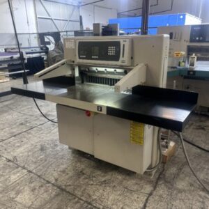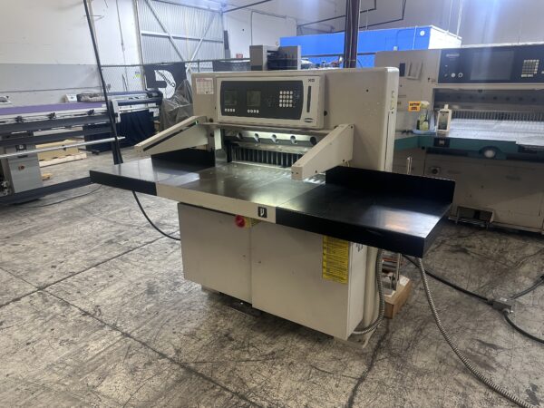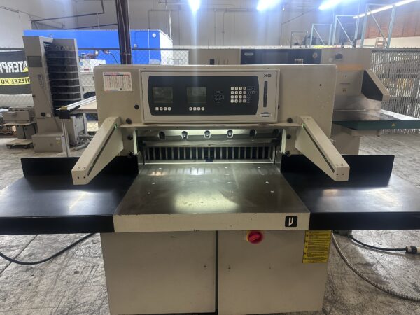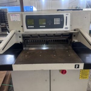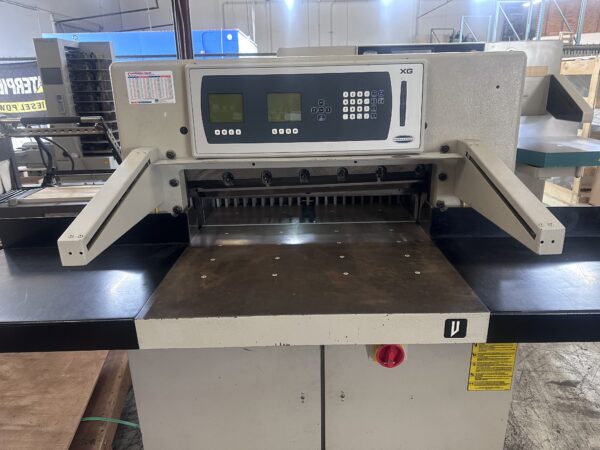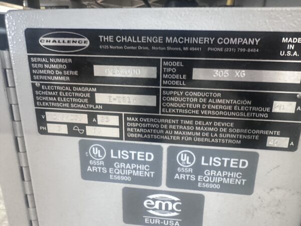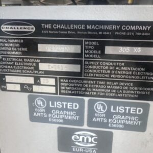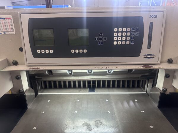Challenge 305XG Heavy Duty programable paper cutter. Machine includes 3 blades, fully programable, safety light beams, motorized back gauge. Hydraulic Cutting and Clamping.
